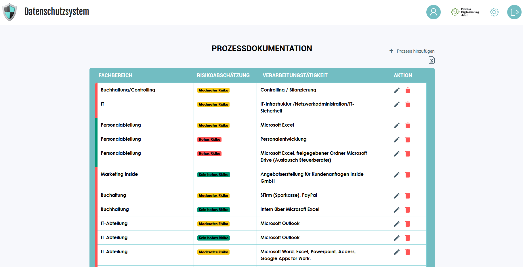 In der Software dokumentieren Sie Ihre Datenschutzmaßnahmen/-Prozesse auf Basis unserer praxisnahen Vorlage in weniger als 1 h.